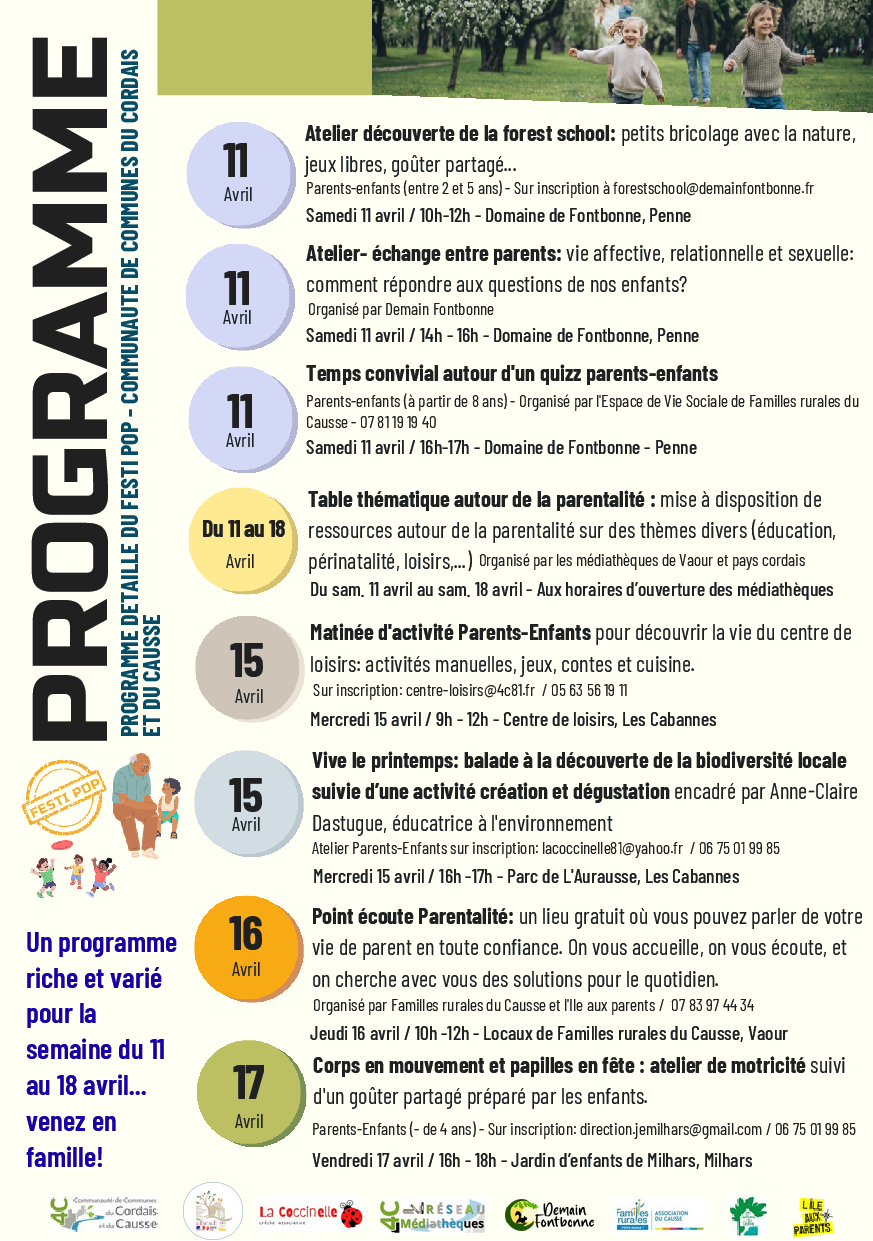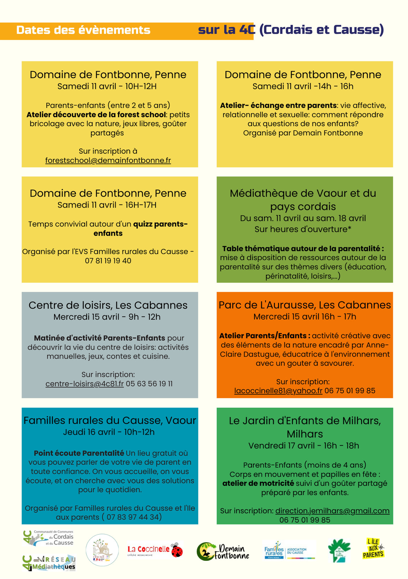 Cet événement se tiendra du samedi 11 au samedi 18 avril 2026 et mettra en avant de nombreuses initiatives dédiées à l’accompagnement des familles sur trois territoires du Tarn.